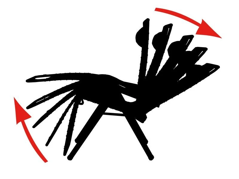 Ingeklapt is deze stoel zeer compact en daardoor gemakkelijk mee te nemen in de meegeleverde opbergtas.