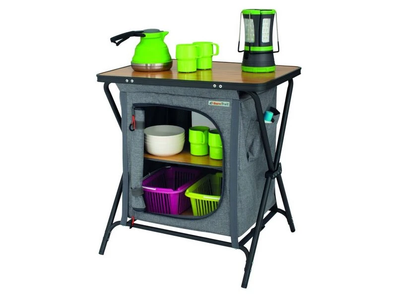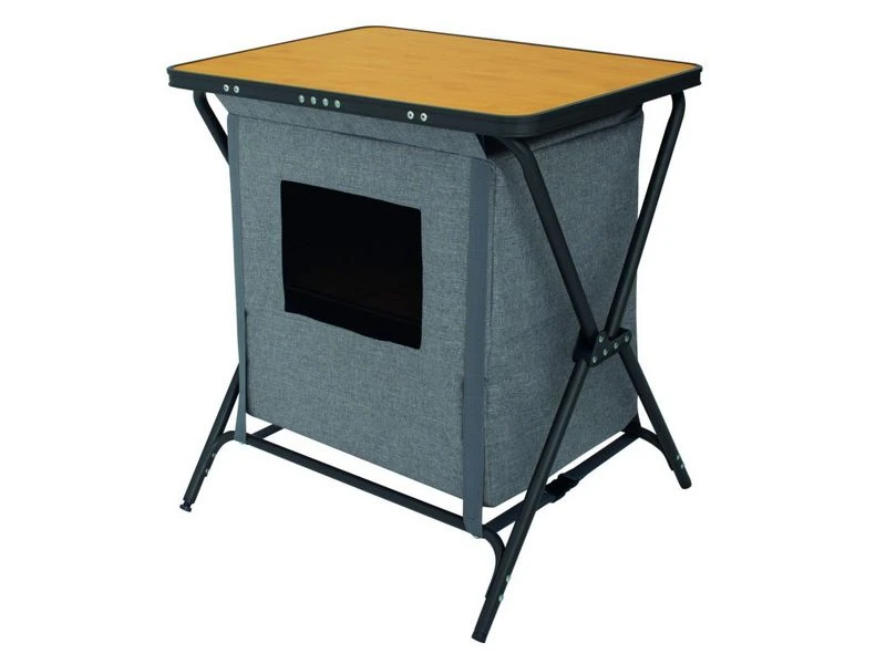Makkelijk en snel op te zetten lage opklapbare kast. De Nova Venossa is gemaakt van gemรชleerd polyester en wordt geleverd met bamboe planken. Voorzien van verstelbare pootjes en inclusief handige opbergtas. Het perfecte formaat om kleine spullen op te bergen en als bijzettafeltje naast je stoel te gebruiken.