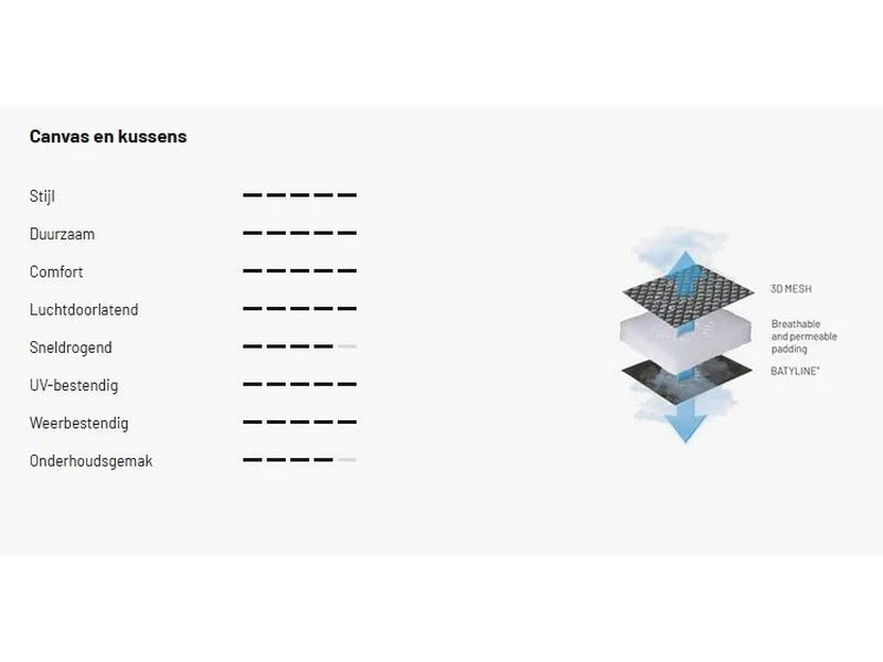 – BeComfortยฎ-kussen: de drie lagen van dit kussen combineren ademende en waterdichte materialen, waardoor het niet alleen comfortabel is, maar tevens goed luchtdoorlatend en sneldrogend.